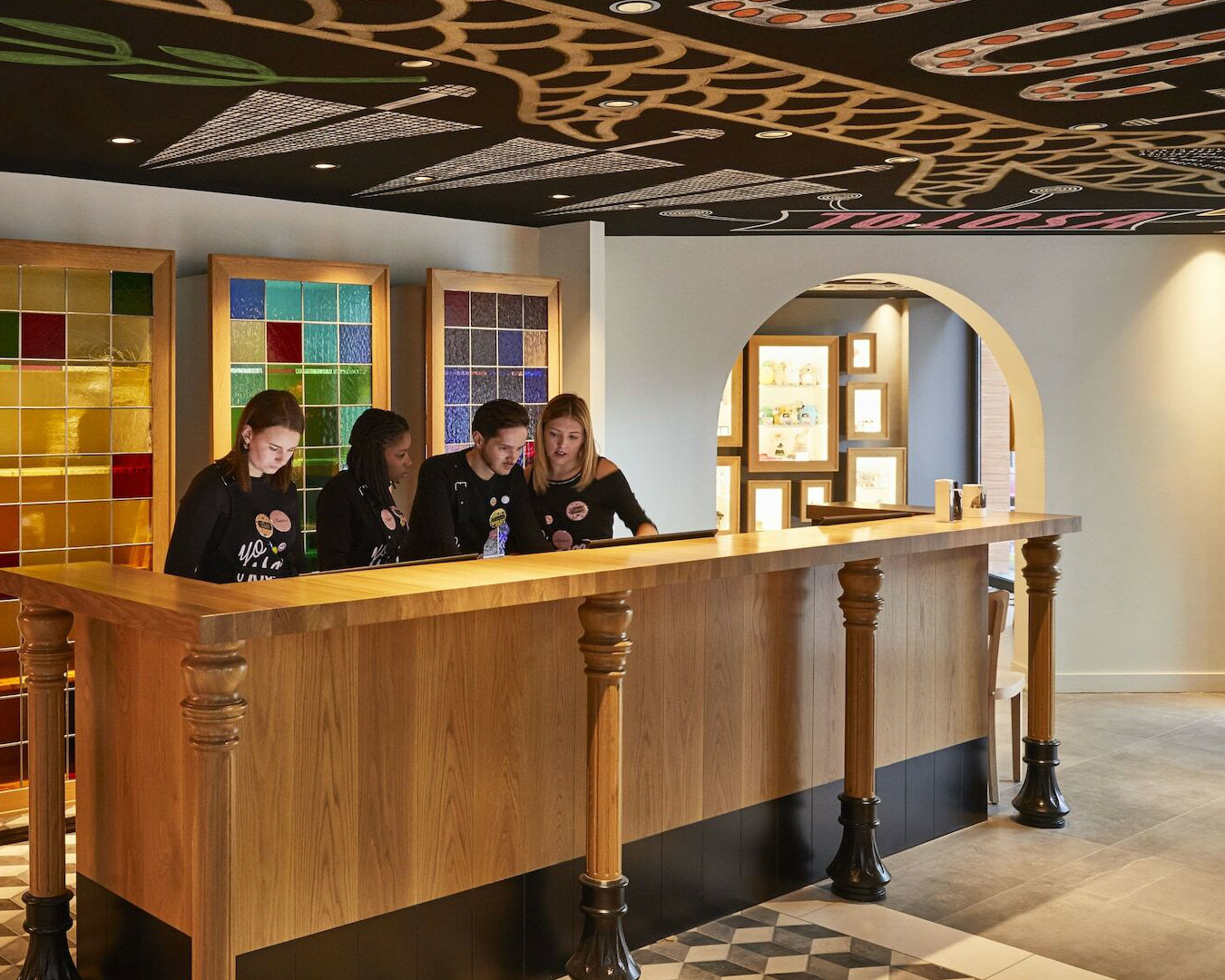 Deux pièces design uniques ont été créées pour l'hôtel branché Mama Shelter de Toulouse. L'architecte a intégré nos colonnes au buffet du restaurant et à la réception, créant ainsi un design contemporain avec un clin d'œil ludique à l'architecture classique. Pour le buffet, nous avons percé des ornements existants de notre gamme pour y intégrer des traverses horizontales, alliant ainsi harmonieusement fonctionnalité et esthétique.